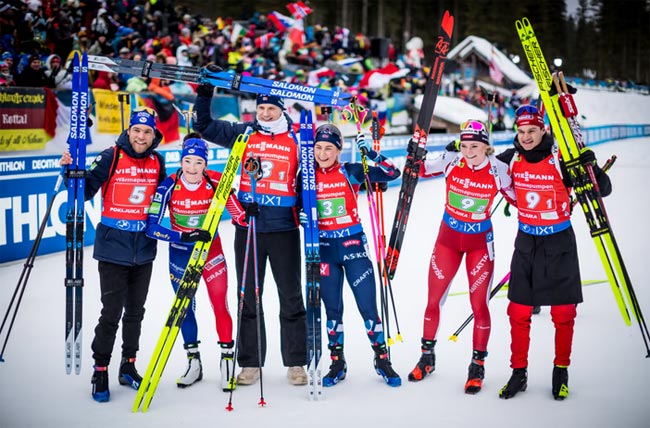1. Франція (Фаб'ен Клод / Кентен Фійон Майе / Анаіс Шевал’е-Буше / Жулія Сімон) - 1.19.48,9 (1 штрафний круг +7 додаткових патронів)