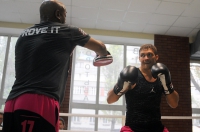 Предлагаем Вашему вниманию фото с открытой тренировки Александра Усика и Дениса Беринчика. Напомним, 29 августа 2015 года в киевском Дворце спорта пройдет вечер бокса «K2 Promotions Ukraine», главным событием которого станет поединок Александр Усик – Джонни Мюллер. На кону – титул Интерконтинентального чемпиона по версии WBO в тяжелом весе, который принадлежит Александру.