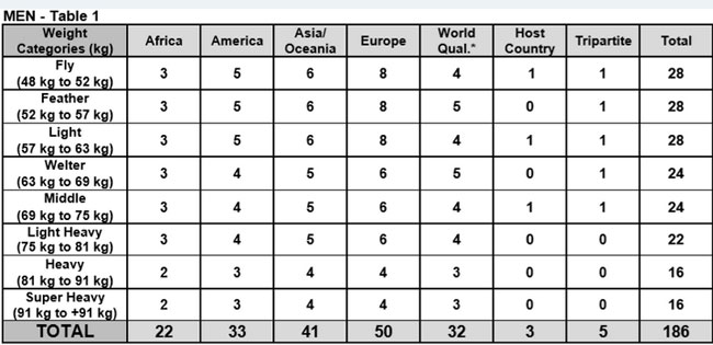 Рабочей группой МОК по боксу принято решение о том, что 53 лицензии, которые планировалось разыграть на всемирном этапе отбора, будут распределены между боксерами с самым высоким мировым рейтингом, который будет обновлен после завершения континентальных соревнований, исходя из территориальных квот.